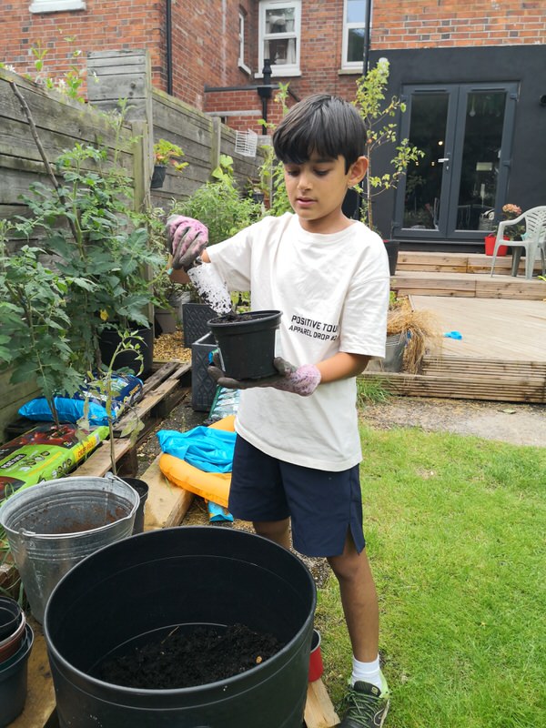 After the plants were placed into the pots, we patted the soil down because avoid roots drying up. Then we watered the plants, put them in the greenhouse and went on holiday. When we returned from holiday, we discovered that the plants had unfortunately died 🙁 even though we did flood them with water. When it died it was just before school so I couldn’t grow another one.